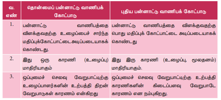1. பன்னாட்டு வாணிபத்தை விளக்குவதற்கு உழைப்பைச் சார்ந்த மதிப்புக்கோட்பாட்டை அடிப்படையாகக் கொண்டது.
