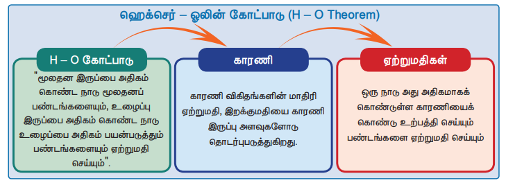 3. ஒப்புமைச் செலவு வேறுபாட்டிற்கு உற்பத்தி காரணிகளின் கிடைப்பளவு வேறுபாடே காரணம் என நம்புகிறது.