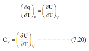 சமன்பாடு (7.19)ஐ மாறாத கன அளவில், வெப்ப நிலையை பொறுத்து வகையீடு செய்ய
