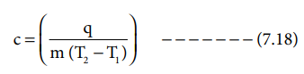 c = (q / [m (T2 - T1)] ) ---------- (7.18)
