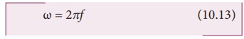 சமன்பாடு (10.11) மற்றும் (10.12), ஆகியவற்றை ஒப்பிடும் பொழுது, கோண அதிர்வெண் மற்றும் அதிர்வெண்ணின் தொடர்பு