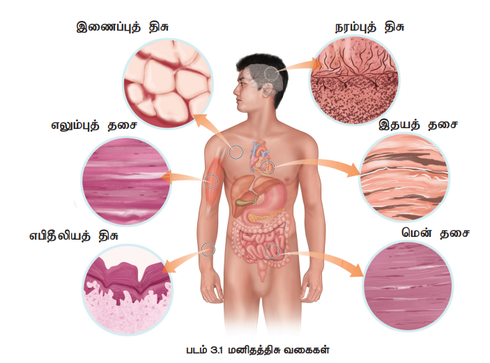 • தசைத்திசுக்கள், இணைப்புத்திசுக்கள் மற்றும் நரம்புத் திசுக்களின் முக்கியத்துவம் பற்றிப் புரிந்து கொள்ளுதல்.