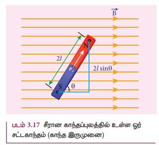 என்ற சீரான காந்தப்புலத்தில் படம் 3.16 இல் காட்டியுள்ளவாறுவைக்கப்பட்டுள்ளது.