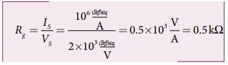 Vs=Is/R கால்வனோ மீட்டரின் மின்தடைஇருமடங்காக்கப்பட்டால், புதிய மின்தடை R' = 2R மின்னோட்ட உணர்திறனில் ஏற்பட்ட அதிகரிப்பு