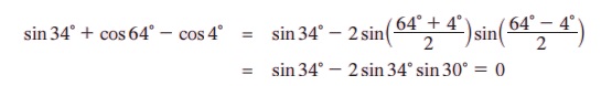 எடுத்துக்காட்டு 3.35 sin 34° + cos 64° – cos 4° இன் மதிப்பைக் காண்க.