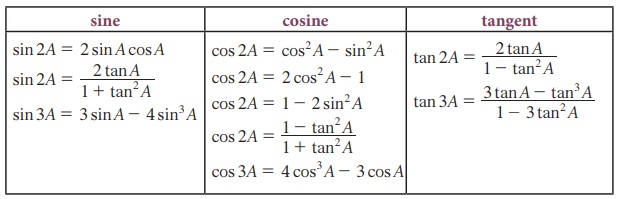 (v) ஒரு கோணத்தை இரண்டு கோணங்களின் கூடுதலாகவோ அல்லதுவேறுபாடுகளாகவோ எழுதுவதன் மூலம் சில முக்கோணவியல் சார்புகளின் மதிப்பை நாம் காணலாம். எடுத்துக்காட்டாக tan 75°-ஐ மதிப்பிடுவதற்கு tan (45° + 30°) என்றும் அதுபோல் cos 135°-ஐ cos (180° - 45°) என எழுதி மதிப்பைக் காணலாம்.