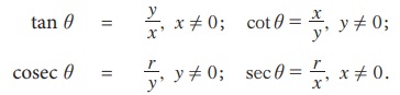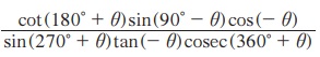 எனவே, tan(90° + θ)=- cot θ, cosec (90° + θ) = sec θ,