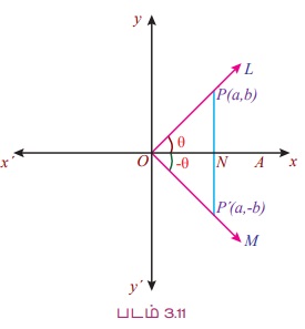 ∠AOL = θ மற்றும் ∠AOM = – θ என்க. OL மீது உள்ளபுள்ளி P (a, b) என்க.