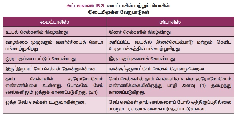 ● மியாசிஸ் பகுப்பின் மூலம் நிலைத்த குரோமோசோம்களின் எண்ணிக்கை பராமரிக்கப்படுகிறது.
