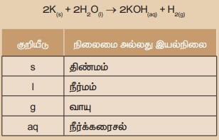 வேதிவினையில் ஈடுபடும் பொருள்களின் நிலை மற்றும் இயற்பியல் நிலையை ஒரு