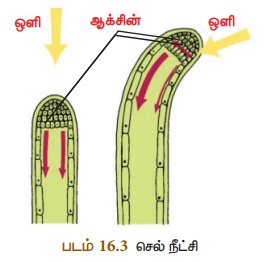 இருந்து முளைக்குருத்து உறையின் நுனியில் இருந்து ஊடுருவிய வேதிப்பொருளே வளர்ச்சிக்குக்