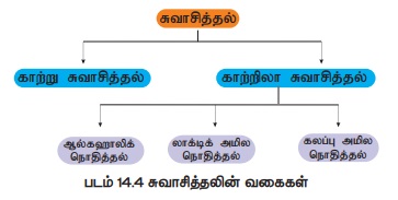 என இரண்டு வகைகளாகச் சுவாசித்தல் பிரிக்கப்படுகிறது (படம் 14.4).