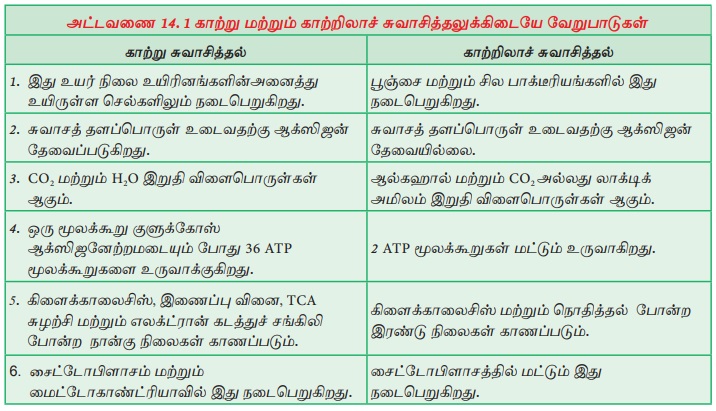 14.1 காற்று மற்றும் காற்றிலாச் சுவாசித்தலுக்கிடையே வேறுபாடுகள்