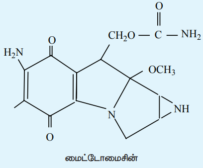 மைட்டோமைசின் C, புற்றுநோய் எதிர்ப்புக் காரணியானது வயிறு மற்றும் குடல் பகுதிகளில் ஏற்படும் புற்றுநோய் சிகிச்சையில் பயன்படுகிறது. இதில் அசிரிடின் வளையம் காணப்படுகிறது. அசிரிடின் வினை செயல் தொகுதியானது DNA ஆல் மருந்து சிதைவடைதலில் பங்கேற்கிறது. இதன் விளைவாக புற்றுநோய் செல்கள் இறக்கின்றன.
