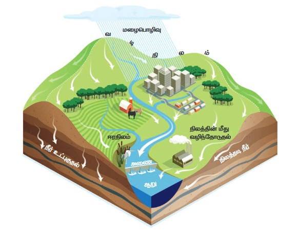 2. வடிநிலத்தில் உள்ள நீர் ஆதாரங்களை வரைபடமாக வரைந்து அவற்றினை குறிப்பு எடுத்துக்கொள்ளல்.