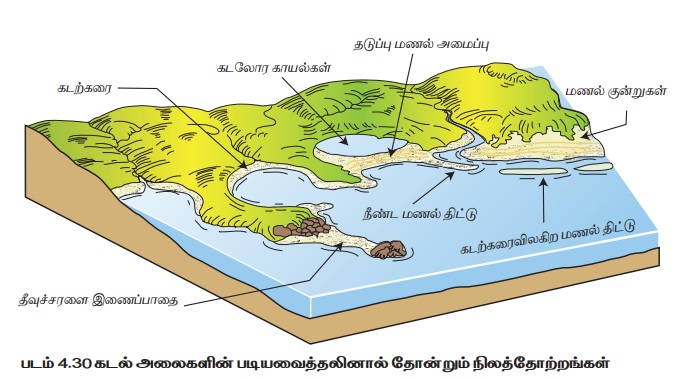 கடல் அலைகளினால் உருவாக்கப்படும் படிவித்தல் நிலத்தோற்றங்கள் ஆகும். இவற்றைப்பற்றி