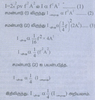 6. ஒலி மூலம் ஒன்று ஒலி அலையை உமிழ்கிறது. ஒர் புள்ளியில் இந்த அலையின் செறிவு (தொடக்கத்தில்) I என்க. ஒலியின் வீச்சு இரு மடங்காக்கப்பட்டு, அதிர்வெண் நான்கில் ஒரு பங்காக 1/4 குறைக்கப் படுகிறது எனக் கருதுக. மேலே கூறிய அதே புள்ளியில் புதிய ஒலிச்செறிவைக் காண்க.