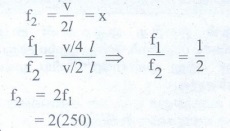 7. சமநீளமுடைய இரு ஆர்கான் குழாய்களில் ஒன்று மூடியது மற்றொன்று திறந்தது மூடிய குழாயின் அடிப்படை அதிர்வெண் 250Hz திறந்த குழாயின் அடிப்படை அதிர்வெண்ணைக் காண்க.