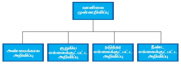 வகைப்படுத்தப்படுகிறது. அண்மைக் கால அறிவிப்பானது தற்போதைய வானிலை விவரங்களையும்,