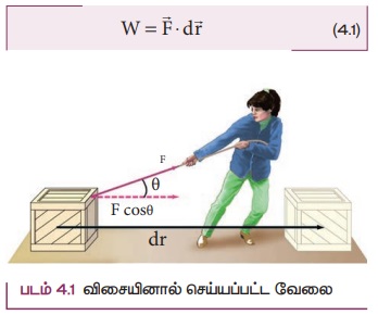 செய்யப்பட்ட வேலை W = F dr cosθ