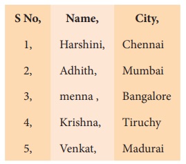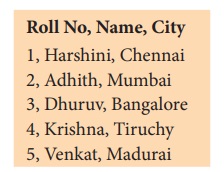உரைப்பதிப்பானில் “student.csv” என்ற கோப்பினை திறக்கும் போது