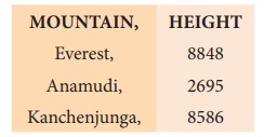 {MOUNTAIN' : 'Anamudi, HEIGHT': ‘2695'},