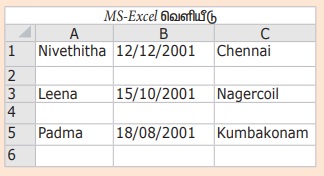 student.csv” கோப்பானது உரைப்பதிப்பானை பயன்படுத்தி திறக்கும்