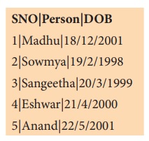 SNO|Person|DOB